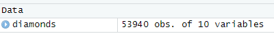 잠시 기다리면 Data로 들어간다. diamonds는 53940개의 행을 가진 data이다.